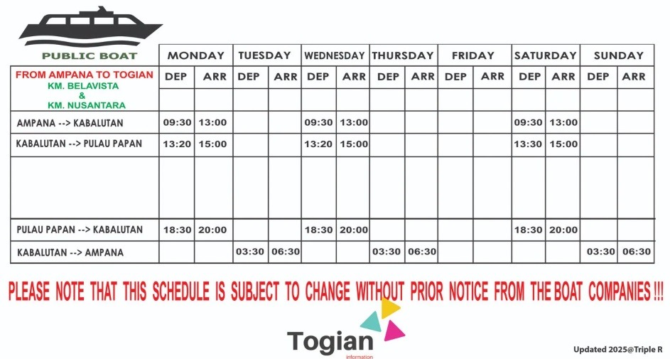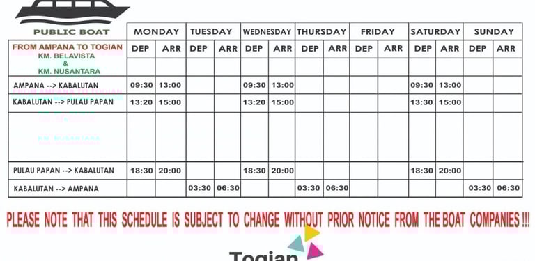 We Provide the latest boat and ferry schedule to/from Togian Islands
