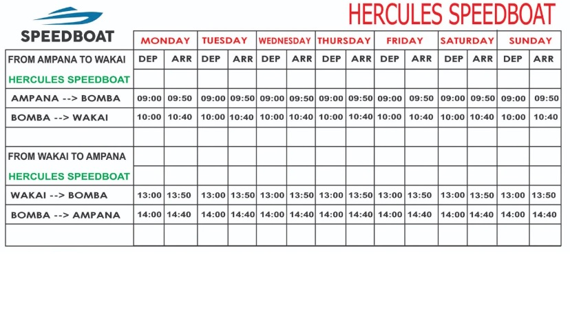 You can catch daily Hercules speedboat at 09:00 hrs from Ampana to Bomba and Wakai.